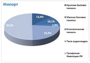 Емкость российского рынка бытовой электротехники и радиоэлектроники (рассчитанная как балансовый показатель производства импорта и экспорта) по оценке AS MARKETING, увеличившись в полтора раза, достигла в 2010 г. почти 18 млрд. долл., выйдя на уровень 2007 г. рис. 3 Структура товарооборота по категориям продукции, 2009 г.