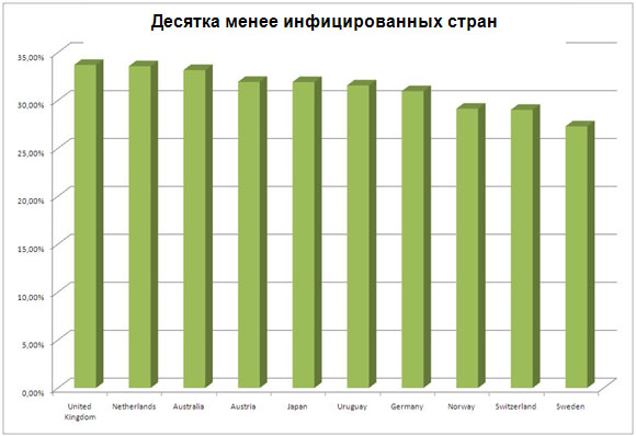 Страны Азии лидируют в рейтинге инфицирования Среди двадцати стран с наиболее высоким уровнем заражения вредоносным ПО, представители Азии по-прежнему занимают лидирующие позиции (Китай, Таиланд и Тайвань). По данным PandaLabs, самый низкий уровень зараженности отмечается в Швеции, Швейцарии и Норвегии.