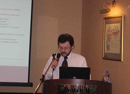 Подытоживая, Олег Фирстов рассказал, что все проекты завершились успешно. В настоящее время SOA стала частью корпоративной культуры банка. Количество используемых сервисов приближается к пятидесяти. В качестве практических рекомендаций Олег Фирстов посоветовал внимательнее относиться к интерфейсам сервисов и их грануляции, использовать BPEL только для долгоживущих процессов, не использовать для перекачки большого количества batch’евых данных. А главное – не бояться ошибаться. Начальник архитектурного отдела ДИТ «ЮниКредит Банка» Михаил Хайзников также поделился опытом создания SOA. Банк имеет централизованную ИТ-инфраструктуру – всё сосредоточено в одном центральном ЦОДе. Используемое программное обеспечение было разработано, в основном, своими силами на платформе AS/400. «Всё работало хорошо, и SOA была не нужна», - рассказывал Михаил Хайзников. Даже при объединении с «ЮниКредит Банком Австрия АГ» вполне хватило возможностей messenger broker, которым пользовались не первый год. В банке имелось решение на платформе IBM WebSphere MB/MQ – передовое по тем временам (2004 год).