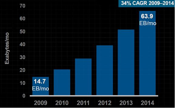 По данным ежегодного исследования Cisco, к 2014 году объем глобального IP-трафика вырастет более чем в 4 раза