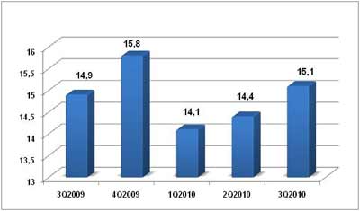 Компания «Ростелеком» подвела итоги деятельности компании за девять месяцев 2010 года по РСБУ. Выручка за третий квартал отчетного периода составила 15,1 млрд рублей, тогда как во втором квартале выручка достигала лишь 14,359 млрд рублей. Заметим, что и в сравнении с третьим кварталом 2009 года нынешние результаты оказываются более весомыми – тогда выручка составила 14,858 млрд рублей. Выручка ОАО «Ростелеком», по данным компании, млрд руб. В компании оценивают рост выручки с сравнении с аналогичным периодом прошлого года в 1 %, связывая его с удвоением доходов от высокотехнологичных новых услуг, связанных, прежде всего, с Интернетом (рост 44 %) и созданием виртуальных частных сетей VPN (рост 366 %). Общая выручка Компании за девять месяцев 2010 года составила 43,5 млрд. рублей, что на 4 % ниже выручки за аналогичный период 2009 года. Напомним, что выручка за 9 месяцев 2009 года составляла 45,405 млрд рублей и была на 2,2 % ниже, чем аналогичный показатель 2008 года. Высокотехнологичные услуги в компании считают одним из ведущих драйверов роста: за 9 месяцев нынешнего года выручка от этого сегмента деятельности выросла в 1,6 раз и достигла 6,2 млрд рублей. Общая выручка от этих услуг, а также услуг интеллектуальной сети связи выросла в 1,5 раза по сравнению с аналогичным периодом прошлого года и достигла 7,1 млрд рублей. При этом доля этого сегмента составила 16 % от общей выручки ОАО «Ростелеком» по сравнению с 10 % за аналогичный период прошлого года. «Общая динамика выручки компании за девять месяцев 2010 года обусловлена усиливающимся замещением доходов от традиционных услуг дальней связи, объем которых снижается из-за продолжающейся миграции абонентов в сети сотовой связи, доходами от высокотехнологичных телекоммуникационных услуг в рамках диверсификации бизнеса», - комментируют в «Ростелеком». Любопытно, что показатель OIBDA за 9 месяцев 2010 года оказался равен аналогичному показателю годом ранее – 9,3 млрд рублей. Однако доля OIBDA от выручки изменилась: если в 2009 году она составляла 20,6 %, то в 2010 году выросла до 21,4 %. Как отмечают в компании, «рост рентабельности по OIBDA также косвенно свидетельствует о замещении доходов от низкомаржинальных традиционных услуг доходами от высокомаржинальных новых услуг». Прибыль от продаж за девять месяцев 2010 года составила 5,4 млрд рублей, что на 11% ниже, чем в аналогичном периоде 2009 года, когда этот показатель равнялся 6,015 млрд рублей. Если же сравнивать результаты третьего квартала, то в 2010 году прибыль от продаж составила 2,2 млрд рублей, тогда как в 2009 году была выше и составляла 2,4 млрд рублей. Прибыль от продаж ОАО «Ростелеком», по данным компании, млрд руб. Финансовым результатом от прочей деятельности стал убыток в 220,5 млн рублей, что на 27 % ниже убытка, полученного годом ранее, за счет снижения отрицательных курсовых разниц на фоне колебания курса рубля относительно доллара США и евро. Напомним, что по итогам третьего квартала 2009 года убыток составлял 300 млн рублей. В итоге чистая прибыль ОАО «Ростелеком» за девять месяцев 2010 года по РСБУ составила 4,0 млрд рублей, сократившись по сравнению с аналогичным периодом 2009 года на 11 %. При этом прибыль за квартал составила 1,8 млрд рублей, что на 0,4 млрд меньше, чем в третьем квартале 2009 года. Чистая прибыль ОАО «Ростелеком», по данным компании, млрд руб. Ранее по этой теме: 08.11.2010 «Роснанотех2010» погов