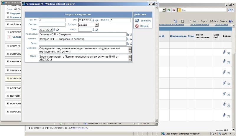 История вопроса Процесс перевода в электронную форму оказания государственных услуг продолжается в нашей стране уже несколько лет. И проходит этот процесс, в целом, успешно. На сегодняшний день уже созданы и функционируют основные инструменты, позволяющие гражданам обращаться за госуслугами через портал государственных услуг (ЕПГУ) или через многофункциональный центр (МФЦ). При этом гражданин должен представить только документы, которые определены законодательно. Все остальные сведения ответственный орган власти собирает самостоятельно. Для государственных органов, в свою очередь, инструментом для сбора необходимой информации, а также для приема обращений и информирования заявителя являются подсистемы оказания государственных услуг в совокупности с системами электронного документооборота. Функционал, реализованный в новой версии СЭД «ДЕЛО», представляет собой типовую подсистему оказания государственных и муниципальных услуг на базе СЭД «ДЕЛО» и позволяет перевести в электронную форму процесс оказания государственных и муниципальных услуг на всех уровнях органов госвласти. Это обеспечивается за счет интеграции СЭД «ДЕЛО» с «Единым порталом государственных и муниципальных услуг» (ЕПГУ) через Систему межведомственного электронного взаимодействия (СМЭВ). По словам представителей компании ЭОС, работа над функционалом, позволяющим госорганам оказывать госуслуги в электронном виде для различных продуктов компании, велась достаточно давно. Одним из аспектов, которые поспособствовали созданию универсального решения, интегрирующего СЭД «ДЕЛО» со СМЭВ, стала федеральная инициатива (вступление в силу Федерального закона 210-ФЗ от 27 июля 2010 года). «Когда появляется федеральный закон, появляется и понимание того, что необходимо разрабатывать функционал, который позволит госорганам реализовать положения закона. Непосредственно разработка нового функционала, позволяющего СЭД «ДЕЛО» взаимодействовать со СМЭВ и оказывать на базе продукта госуслуги, заняла примерно три квартала, а процесс интеграции функционала в новую версию продукта занял порядка двух месяцев», - говорит заместитель начальника отдела маркетинга ЭОС Алексей Осотов. Отметим, что у ЭОС уже существует успешный опыт реализации проектов для госорганов по организации предоставления госуслуг и на базе различных продуктов компании. Здесь можно сказать о проекте для государственных органов в Калининграде (на базе СЭД «ДЕЛО» и специального функционала по контролю исполнения заявлений), для госорганов в Республике Бурятия (проект реализован на базе EOS for SharePoint). Проекты, о которых говорится выше, а также ряд других были реализованы «под заказ», по желанию соответствующих госорганов. В силу массового распространения СЭД «ДЕЛО», отличительной особенностью нового функционала, представленного в новой версии СЭД, является то, что это типовое решение, позволяющее перевести процесс оказания государственных и муниципальных услуг в электронную форму на всех уровнях. Схема действия Для решения задачи оказания электронных услуг при помощи типовой подсистемы оказания государственных услуг на базе СЭД «ДЕЛО» заказчикам из числа госорганов необходимо, наряду с СЭД «ДЕЛО», иметь «Подсистему управления процессами» и «Сервер электронного взаимодействия» (с со